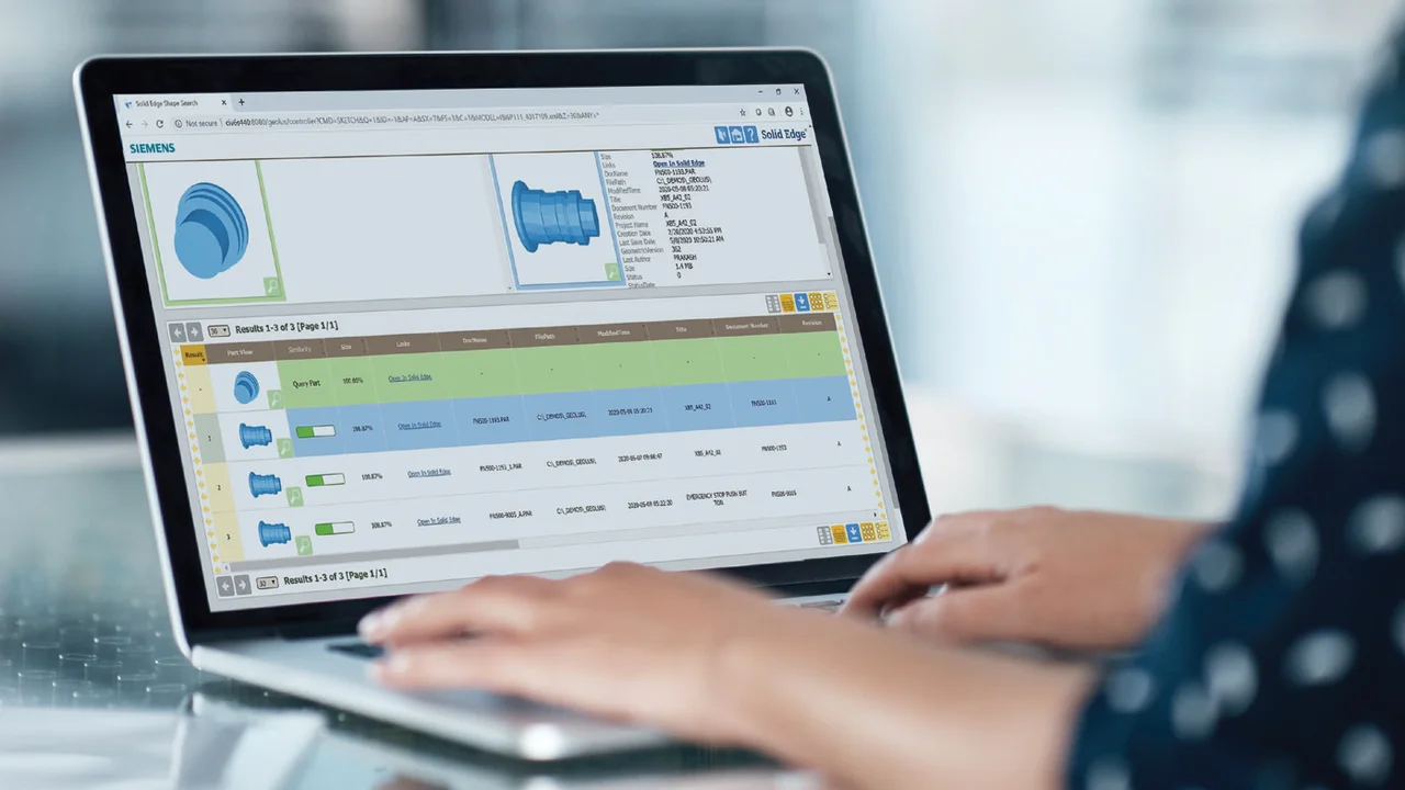 Baanbrekende technologie: Zoek op geometrie in Solid Edge. Solid Edge Shape Search is een functie die beschikbaar is in Siemens Solid Edge, een 3D CAD-softwarepakket dat wordt gebruikt voor het ontwerpen, modelleren en simuleren van producten. Shape Search is een zoekfunctionaliteit die gebruikers helpt om 3D-modellen, onderdelen en assembly's te vinden op basis van visuele overeenkomsten met een gegeven model of afbeelding.